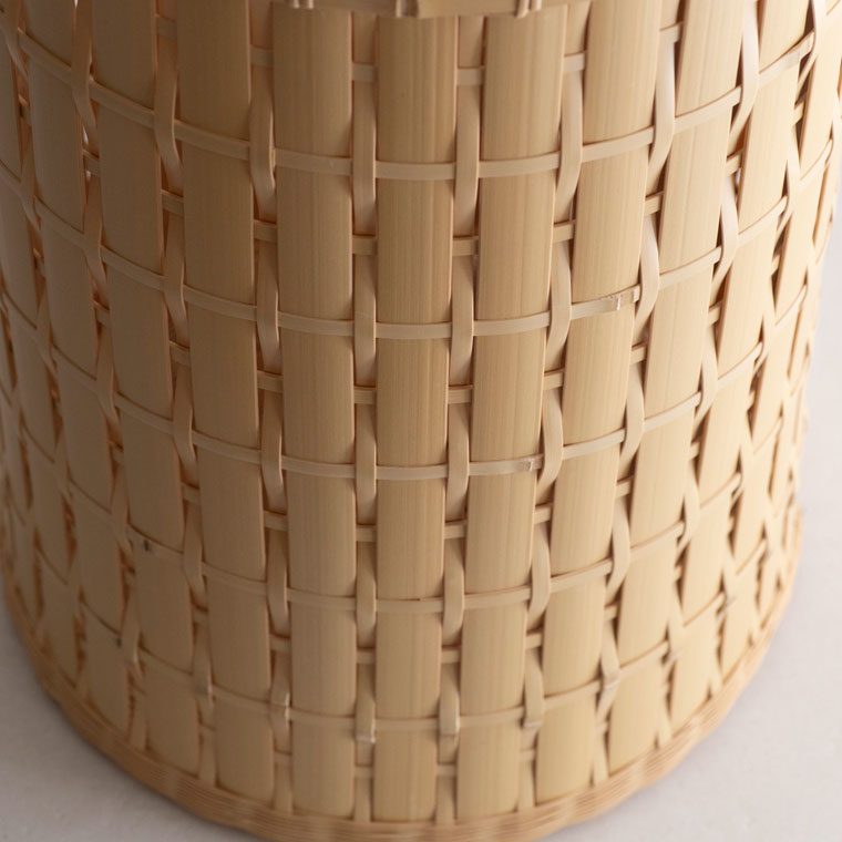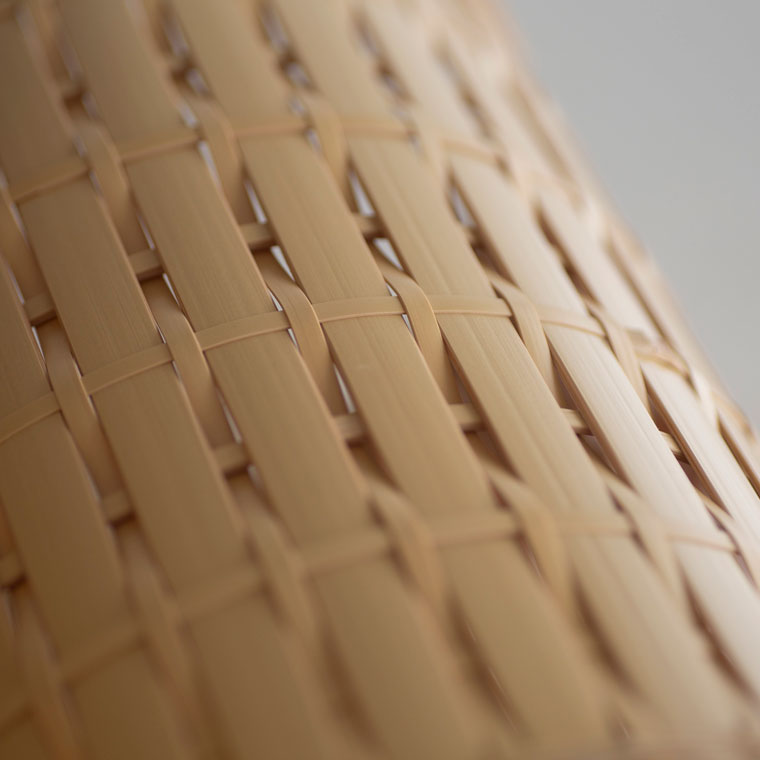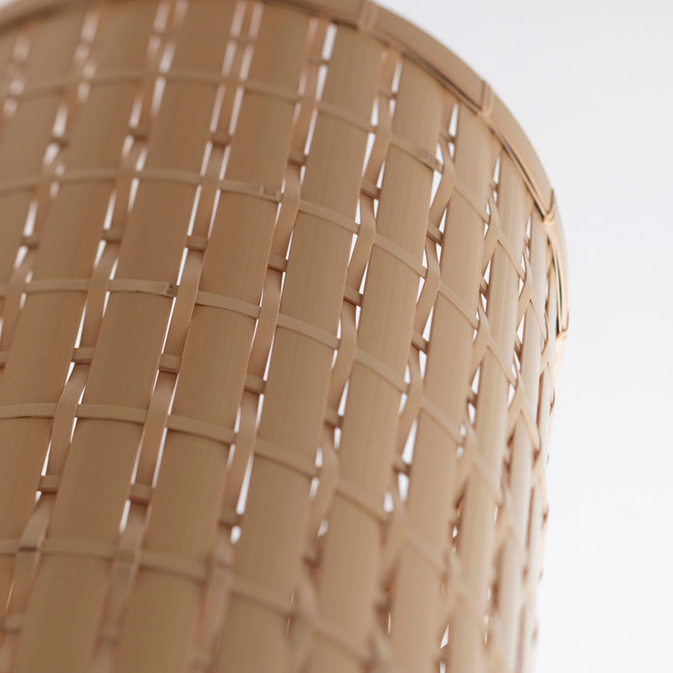「買い物かごなどの底に使われている“筏底いかだぞこ”は、竹ひごが幅広く厚みもあって力強いんです。ふだんは陽の目を見ない存在ですが、その力強さと美しさに惹かれ、筏底のような雰囲気を生かしたいと思ってつくりました」と中村さん。