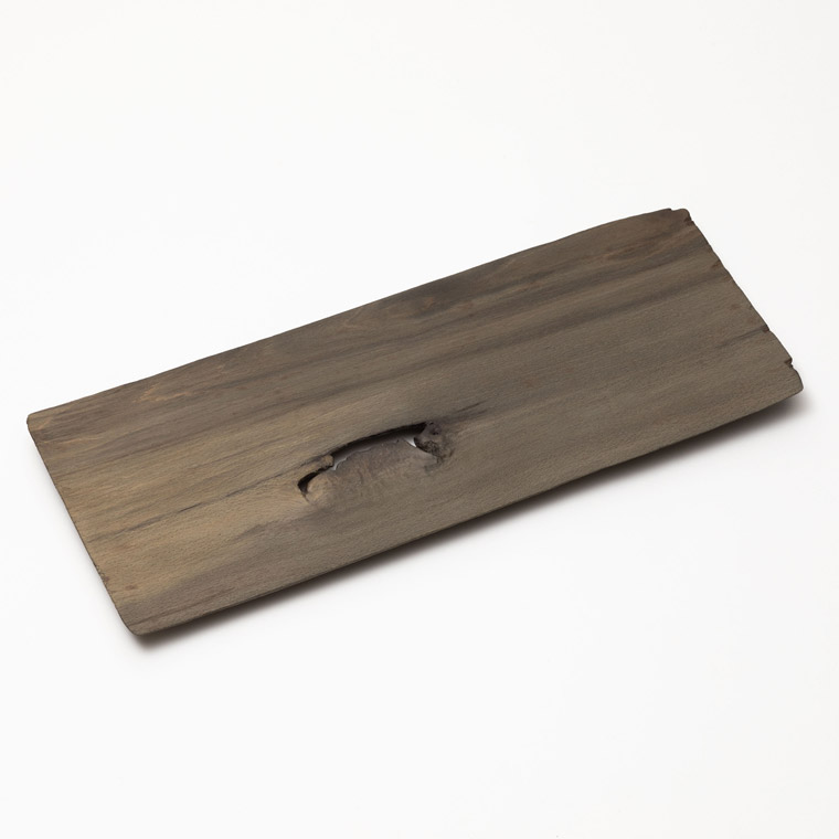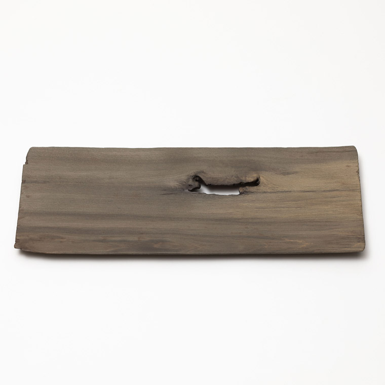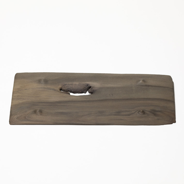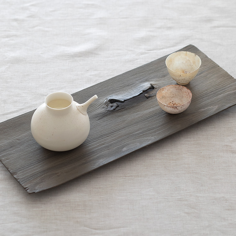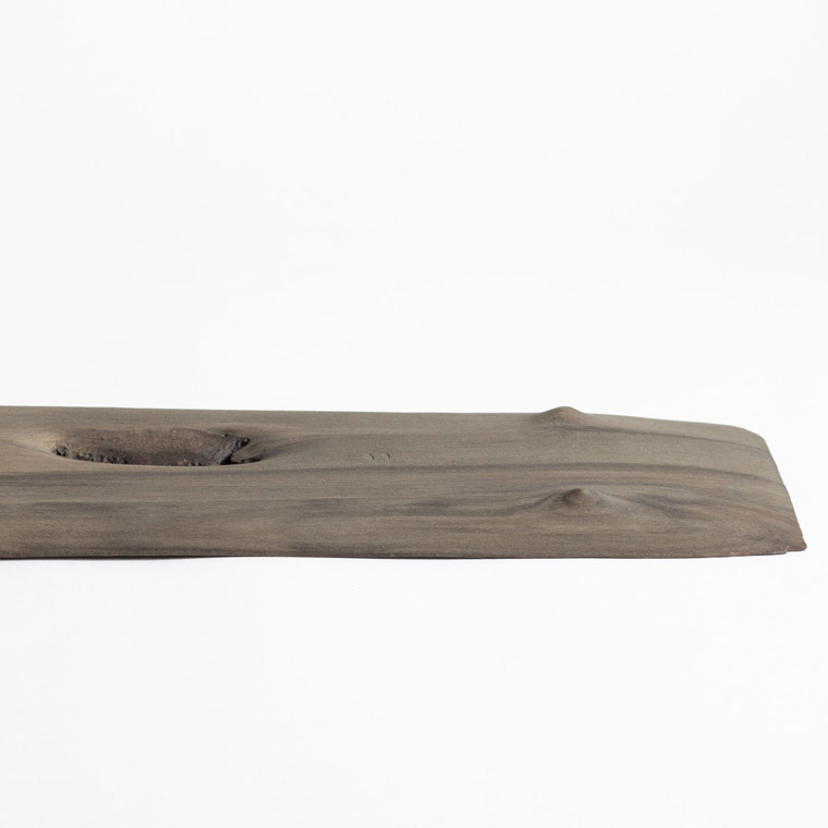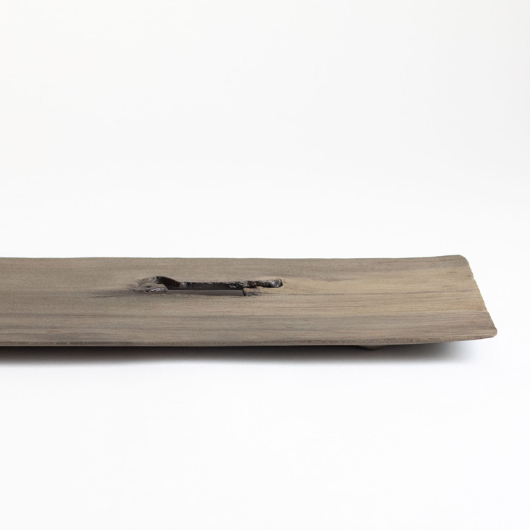 樹齢100年以上のブナの木を使用し、独自の技法で表情を刻んでから鉄媒染を用いてグレイッシュに発色、極薄いウレタン塗装で仕上げています。
