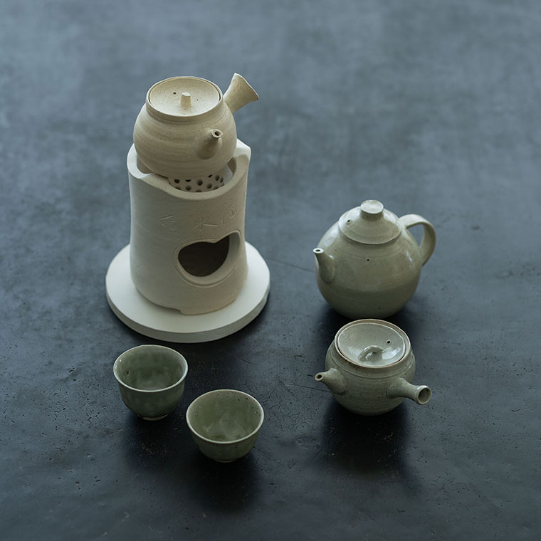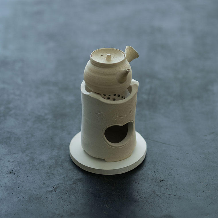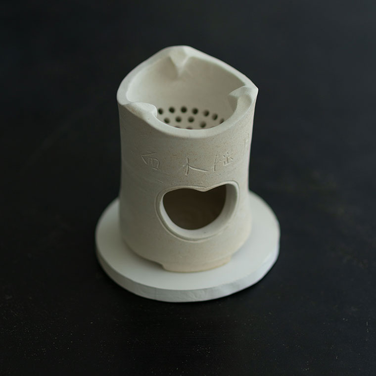 涼炉のやわらかな白肌には「面水揺月」と文字が刻まれています。梶原さんが温泉の露天風呂に浸かっている時、水面に月が揺れている光景を詠んだものだそうで、何とも風流です。