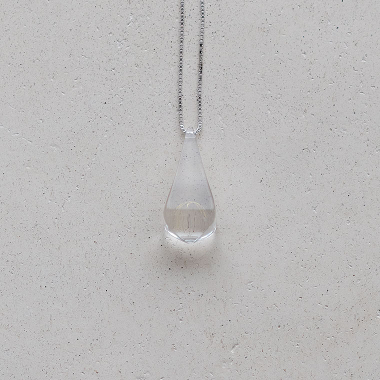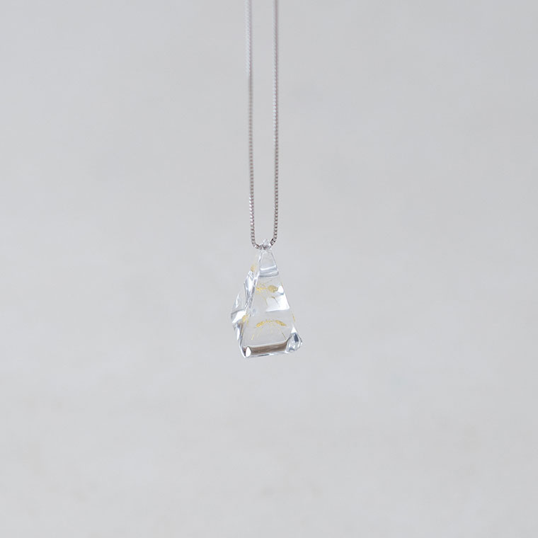 長さ約55センチのチェーンはシルバーで、硫化によって黒ずむのを防ぐため表面にロジウムめっき(ニッケルフリー)を施しています。(ロジウムは化学的に安定していて、金属の酸化や変色を防ぎ、とても硬いためメッキ剥がれも起こりにくいと言われています。ニッケルフリーのめっきで、金属アレルギーは出にくいと言われています)。