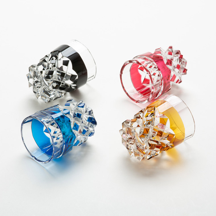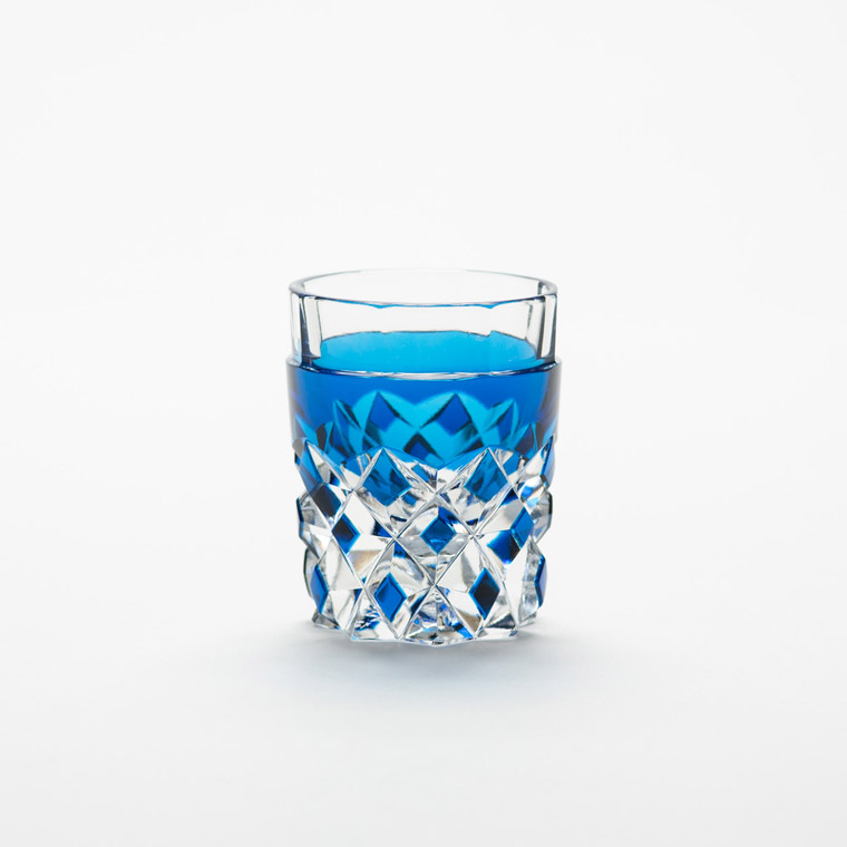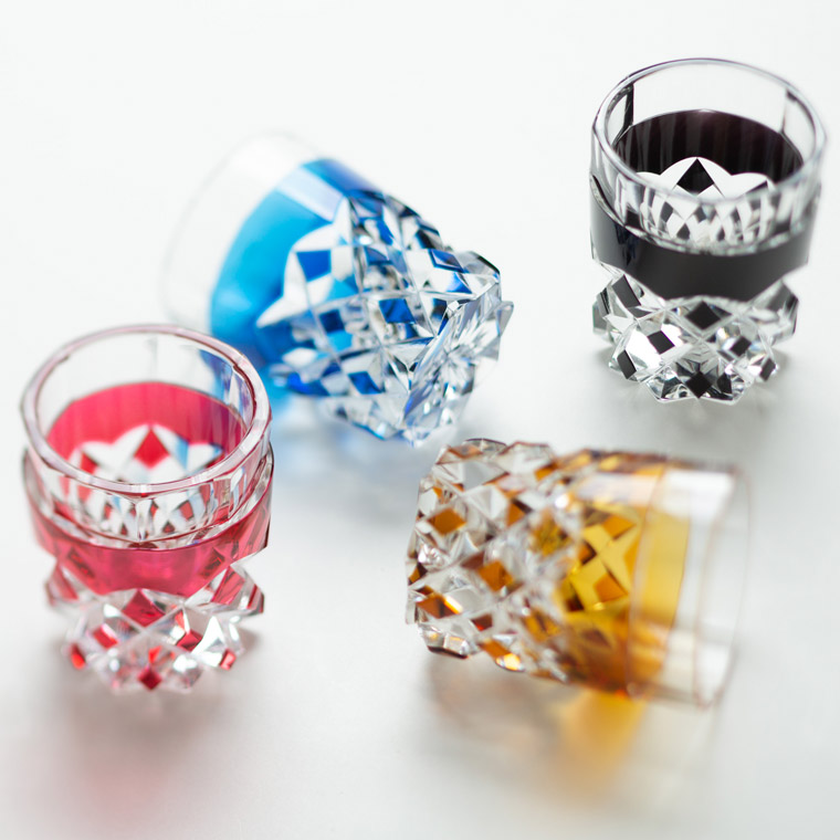 色味を合わせた江戸切子のぐい呑と仕覆のセットです。