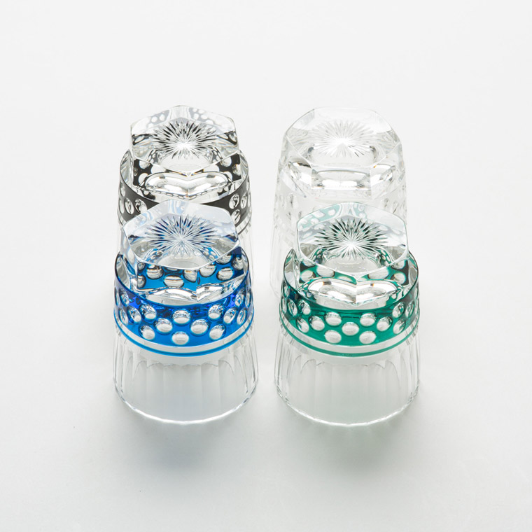 色味を合わせた江戸切子のぐい呑と仕覆のセットです。