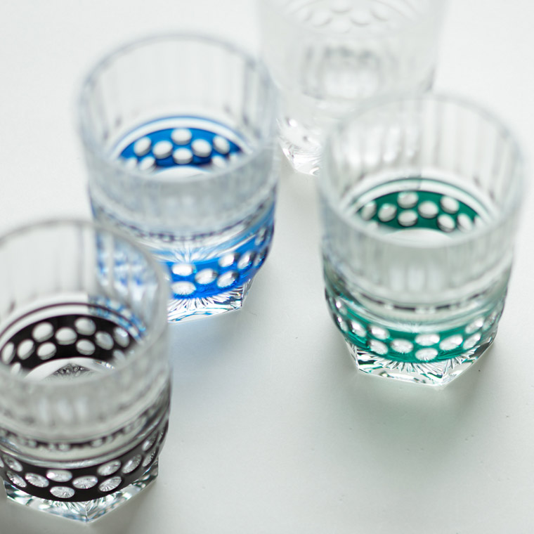 酒盃 寸胴 水玉(クリア) × 江戸小紋仕覆「シャーク」