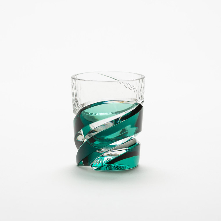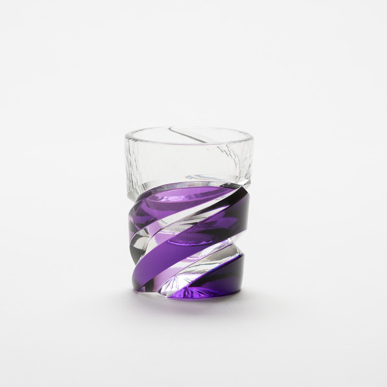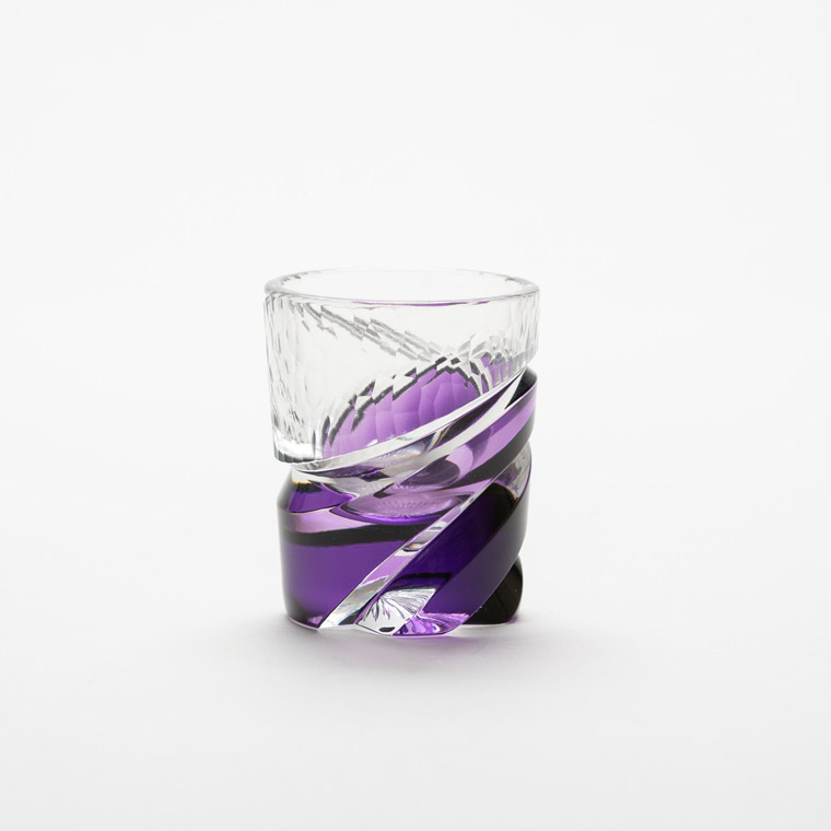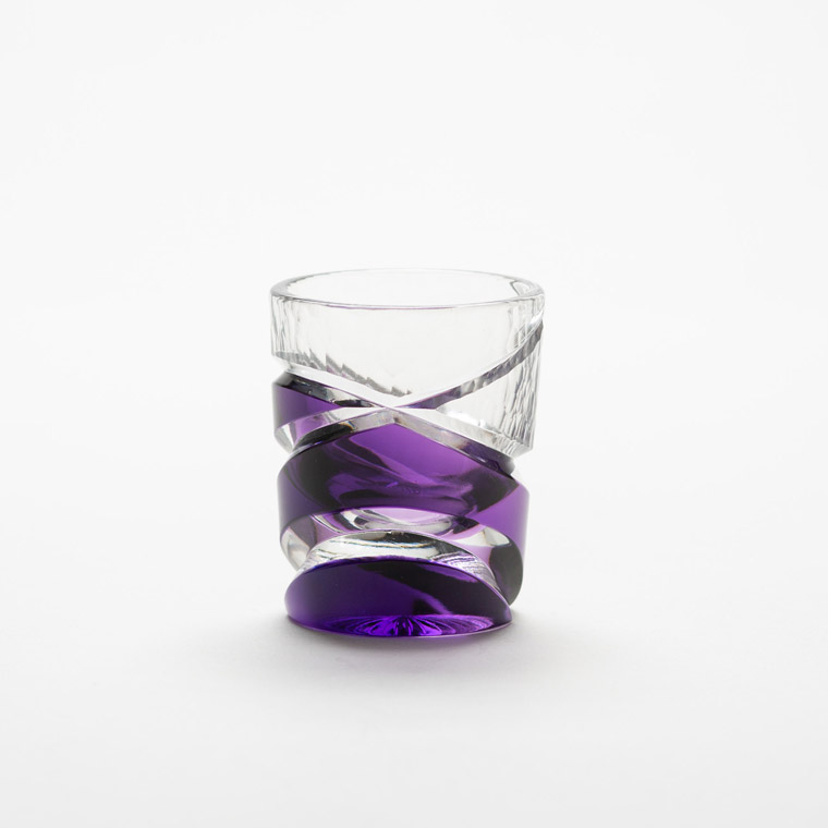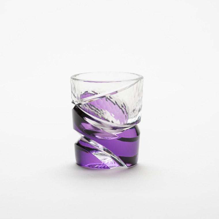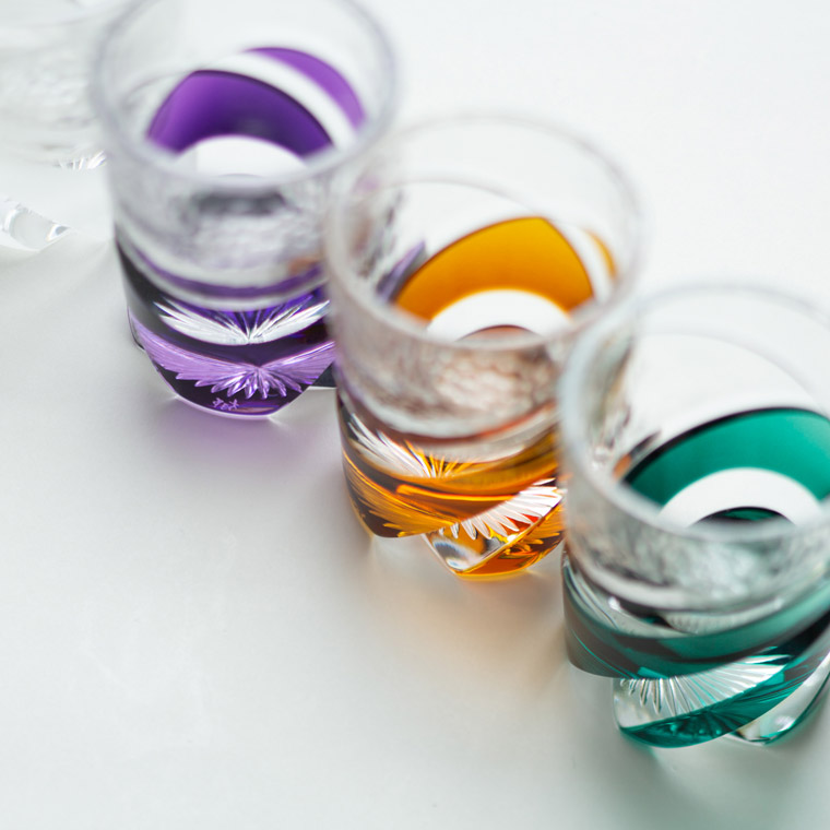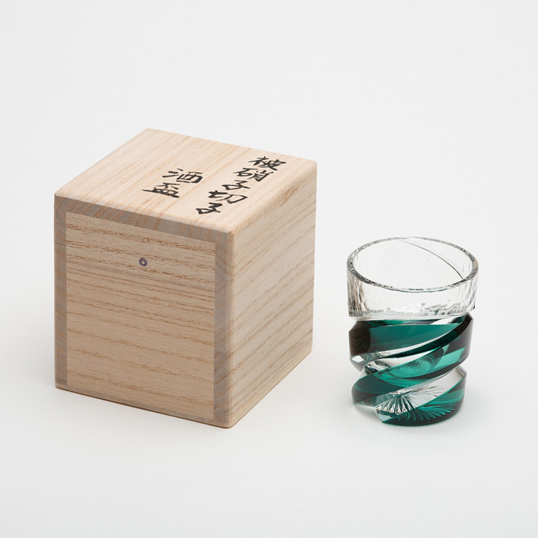 色味を合わせた江戸切子のぐい呑と仕覆のセットです。