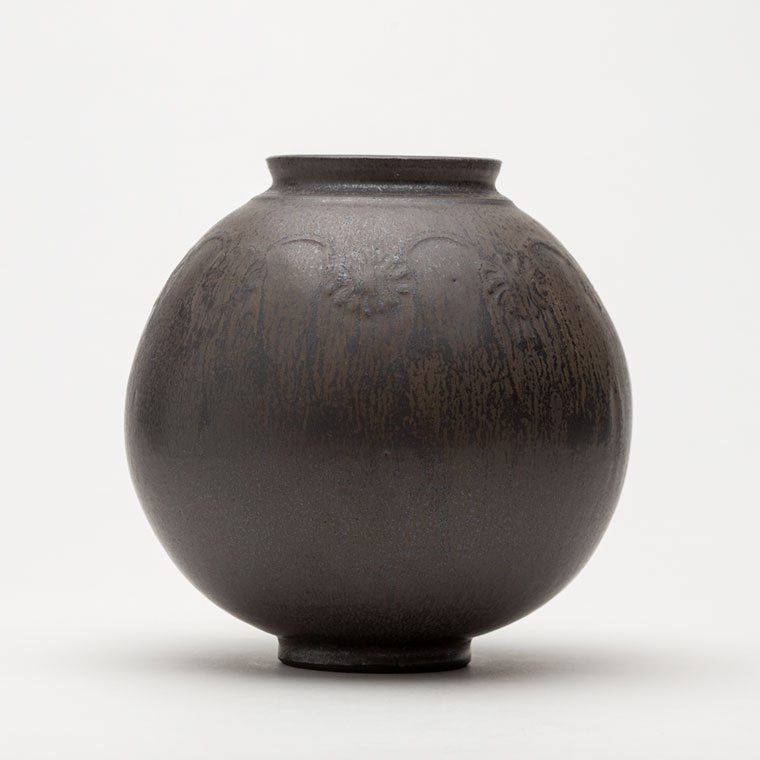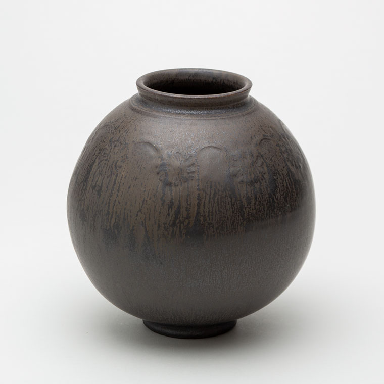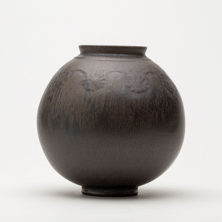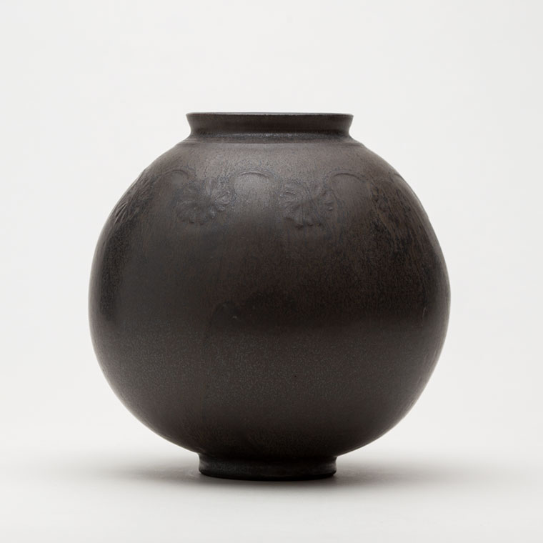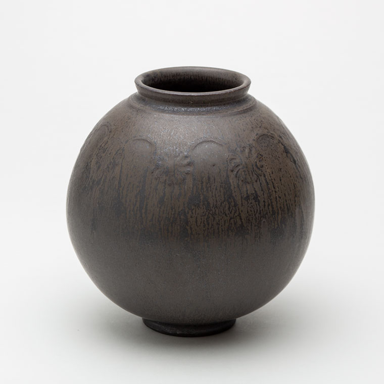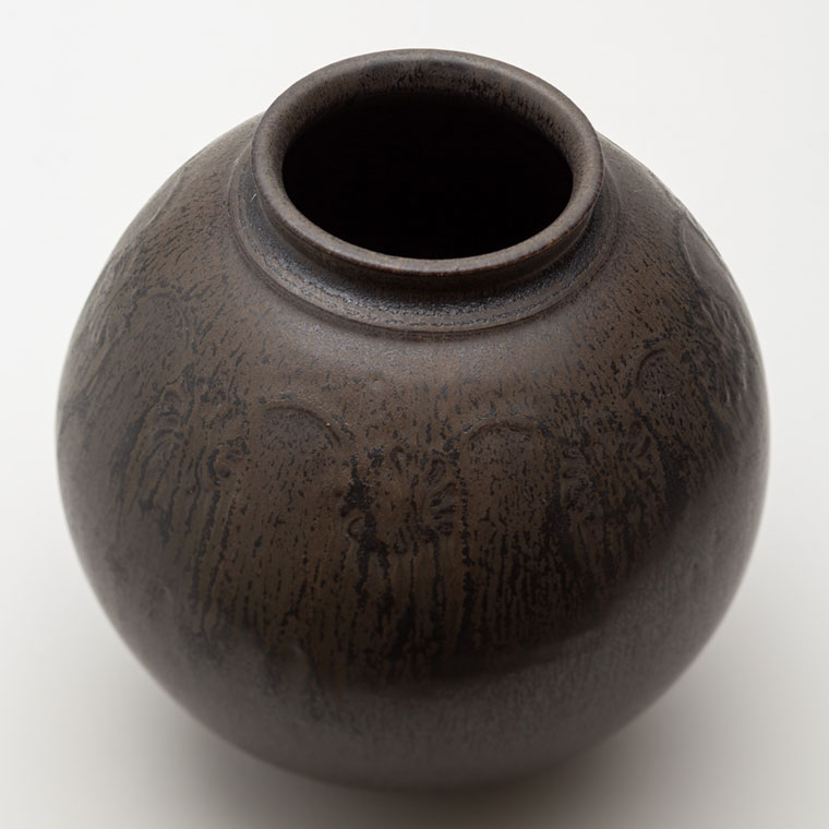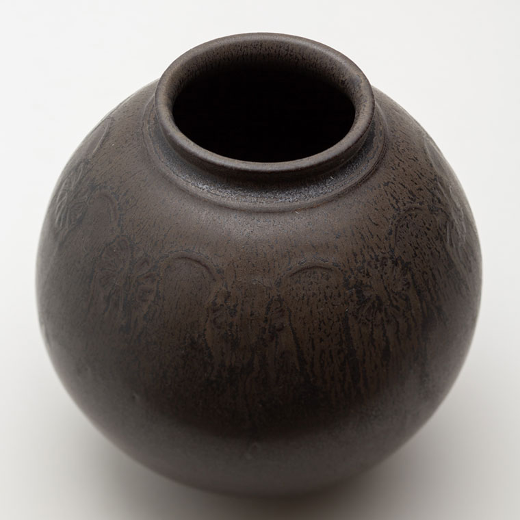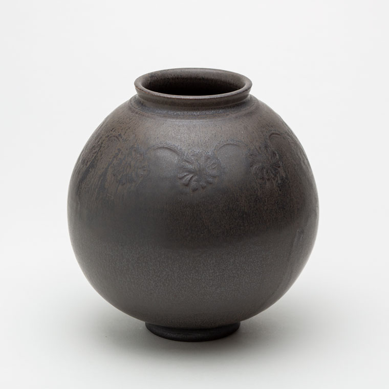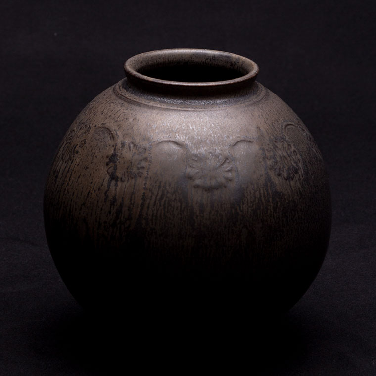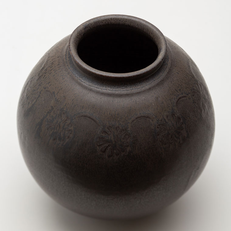 黒釉刻花紋壺