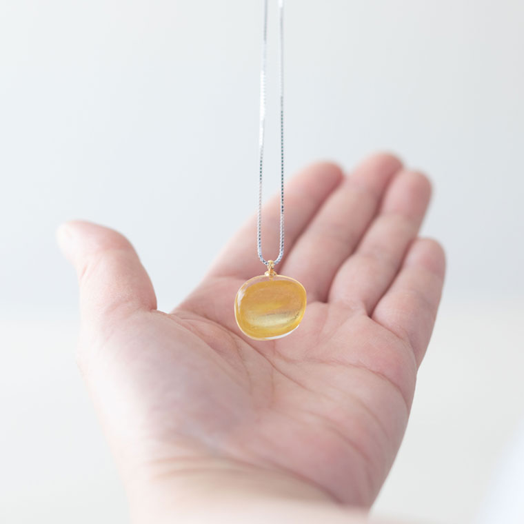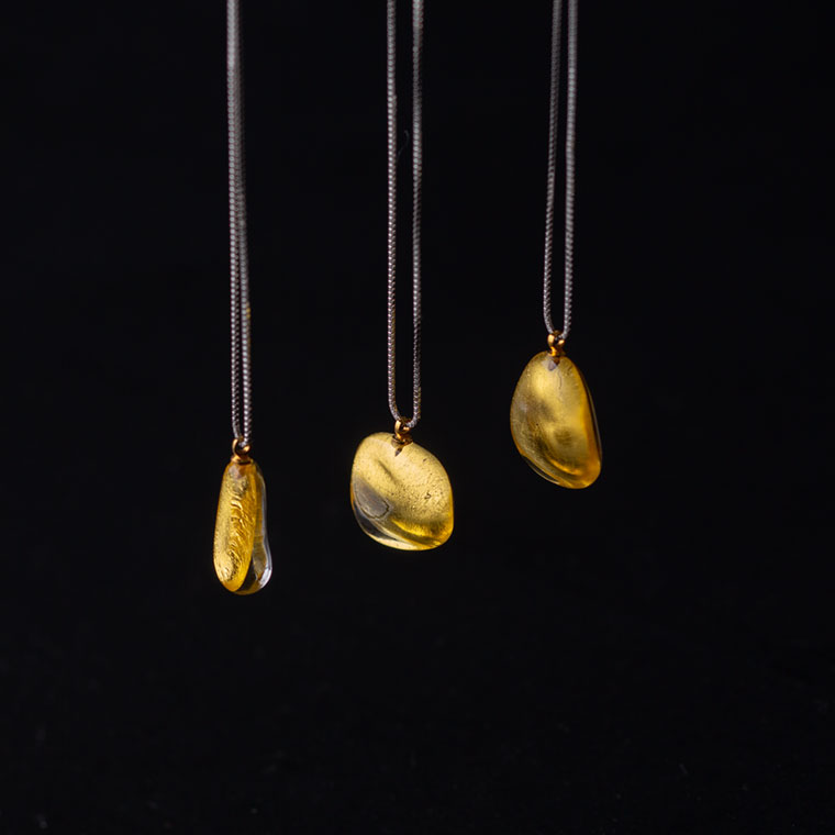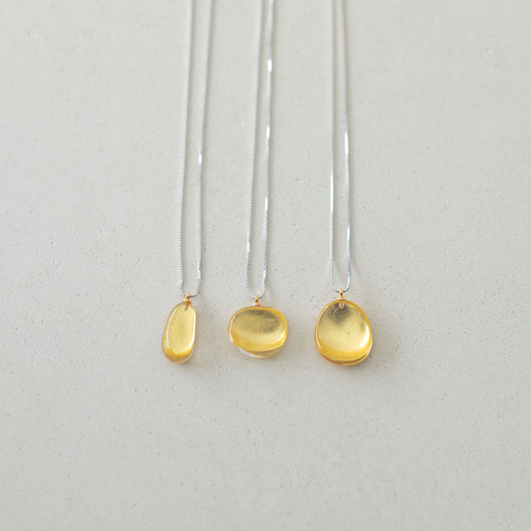 手磨きで削った丸みはトロッとした質感で、ガラスの塊を小さくギュッとしたような雰囲気です。