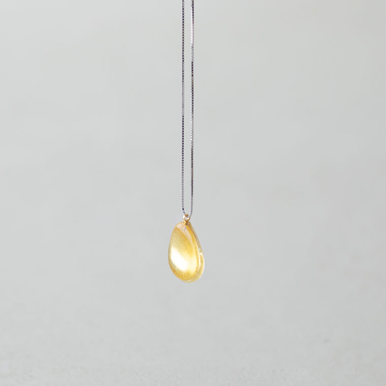 長さ約55センチのチェーンはシルバーで、硫化によって黒ずむのを防ぐため表面にめっきをかけています(チェーンは使用時に長さを調節できます)。