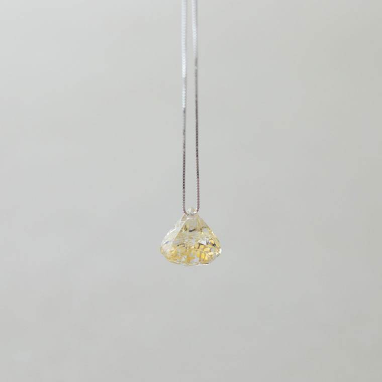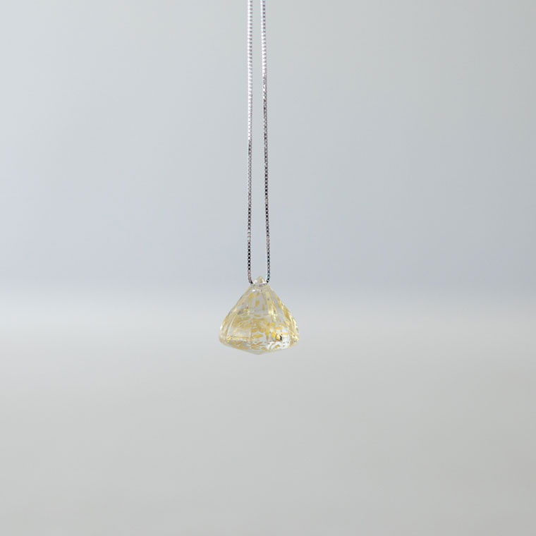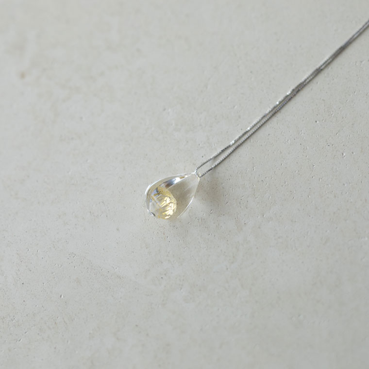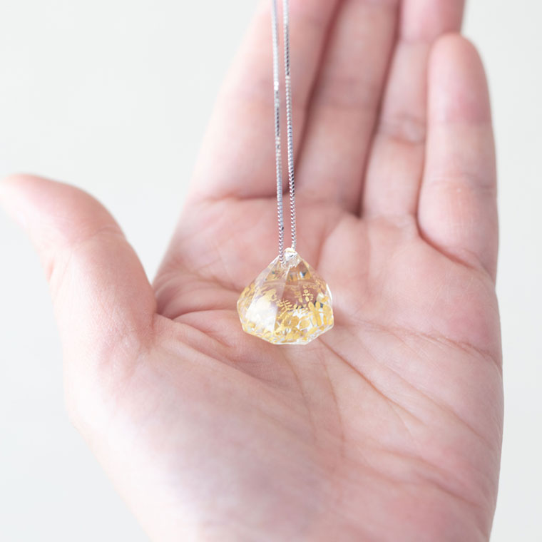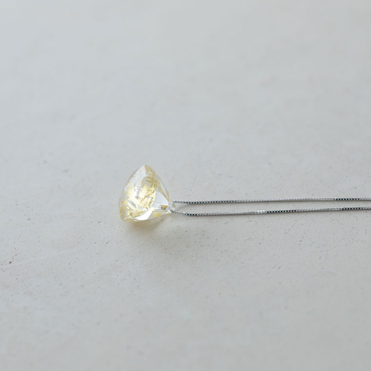 長さ約55センチのチェーンはシルバーで、硫化によって黒ずむのを防ぐため表面にめっきをかけています(チェーンは使用時に長さを調節できます)。