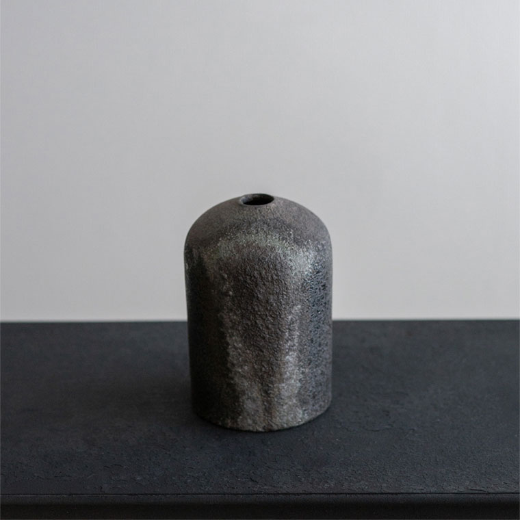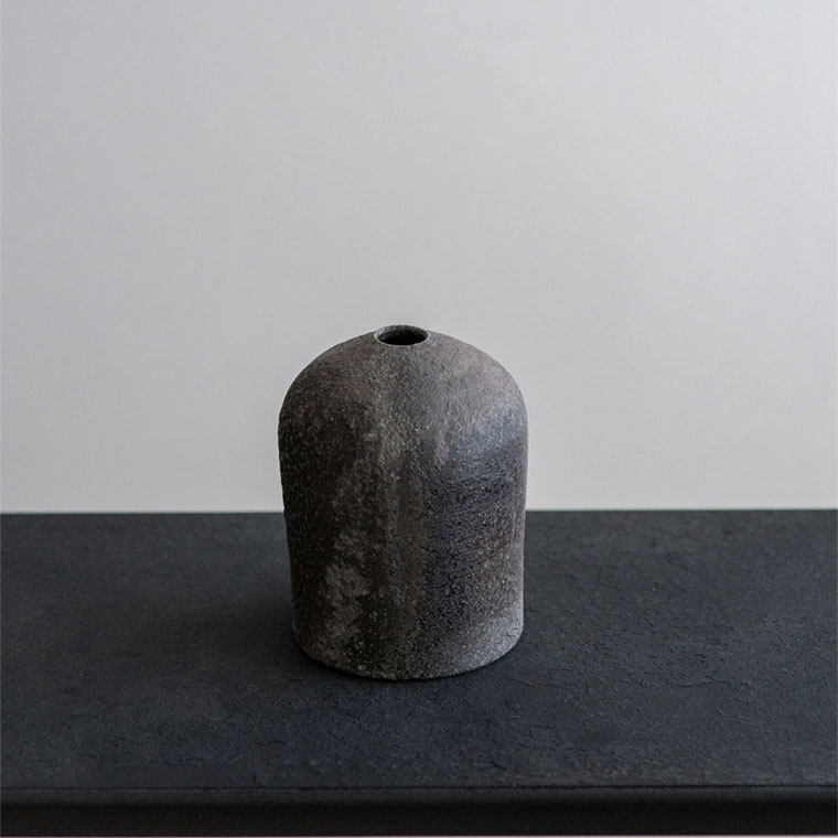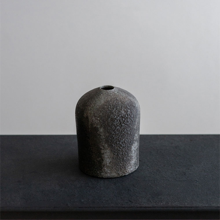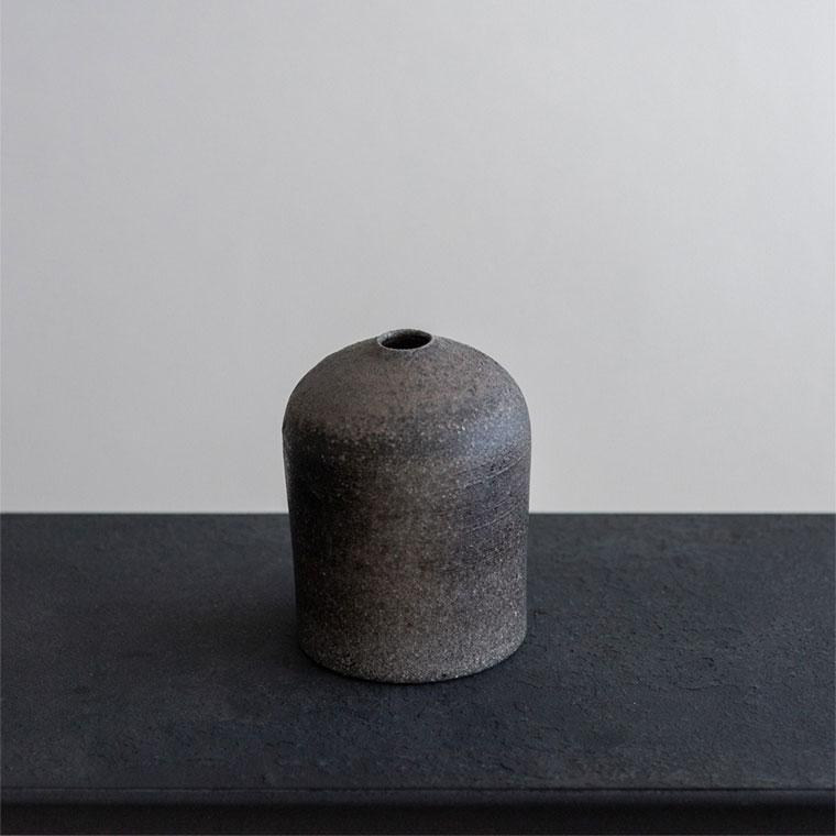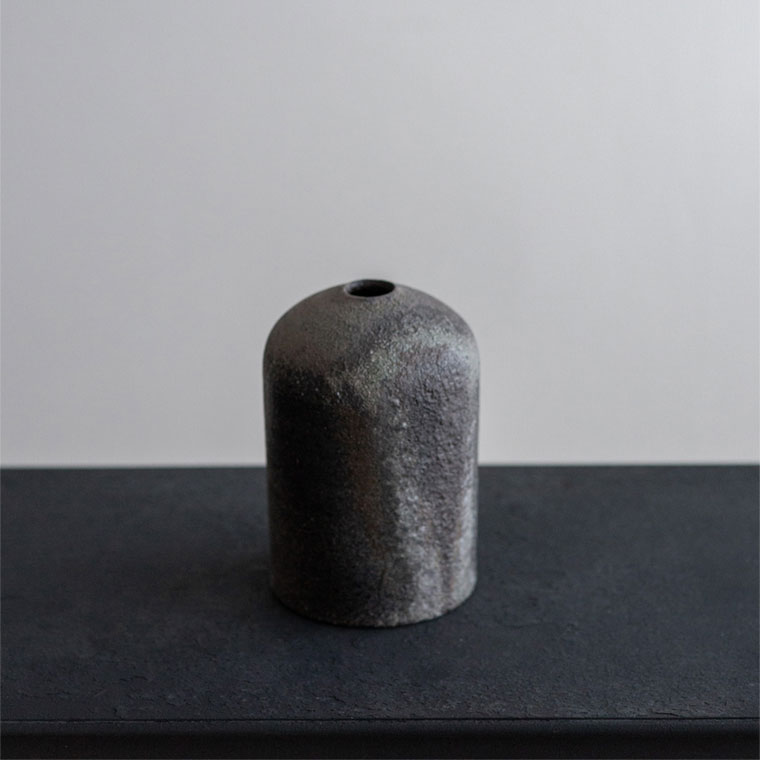 高さ約15cm、口径約2cm、たっぷりと灰を被った肌合いです。