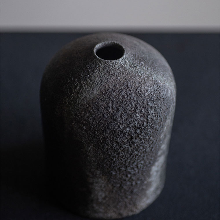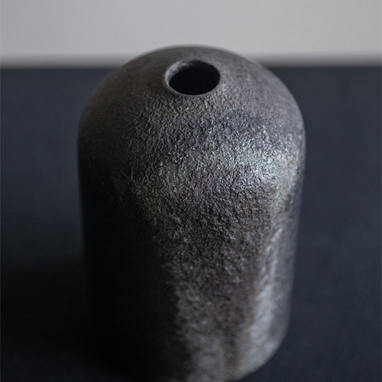 珠洲古陶との出会いを原点とする篠原敬さんは、花器などは紐づくりの手びねりで制作されています。
